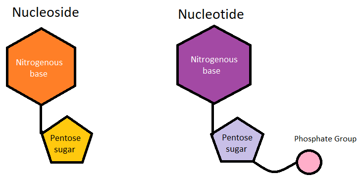 Hint: Nucleic acids are the building blocks of nucleotides. A nucleotide consists of a Nitrogen-containing base bonded with 5 carbon sugars which is disconnected by a phosphate group. These are glycosylamines without a phosphate group, in which the glycosyl group is attached to an amino group.