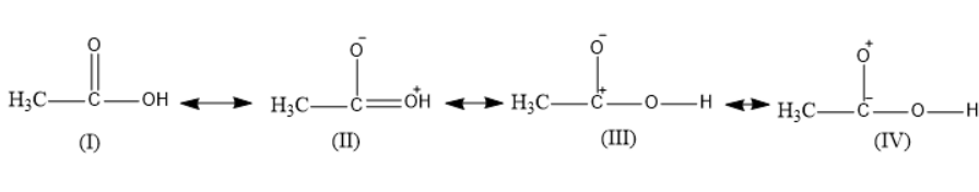 Thus, \[IV\] structure is the least stable resonance structure of acetic acid.