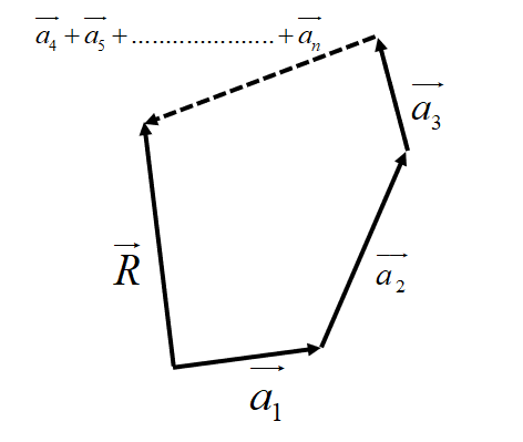 For example, if we have ‘n’ number of vectors starting from $\overrightarrow{{{a}_{1}}}$ to $\overrightarrow{{{a}_{n}}}$, then the resultant of these vectors (say $\overrightarrow{R}$ )can be represented as follows: