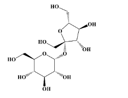 - Sucrose is a dimer of glucose (6-membered ring) and fructose (5-membered ring)