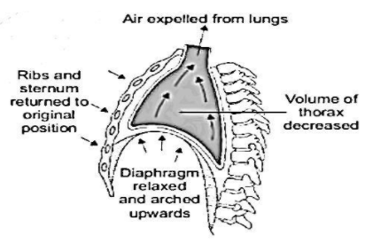 Hint:Expiration is giving out carbon dioxide. It is a part of breathing. This follows Boyle’s Law. (Pressure is inversely proportional to Volume). During expiration, volume of the lung cavity decreases and thus due to high pressure, air is out.