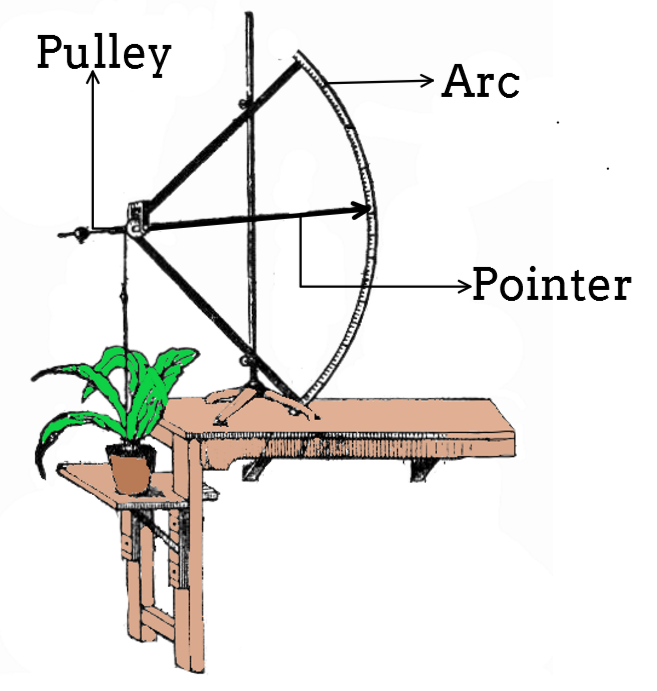 Arc Auxanometer: It is composed of several parts, it is composed of a pulley connected to a pointer present on an arch scale over a vertical scale,