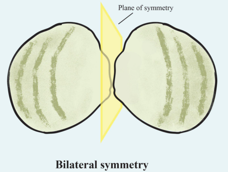 Bilateral symmetry is found in Platyhelminthes and Mollusca. If we draw a line from the interior and of the organism in Platyhelminthes to the posterior and then it will reflect each other forming bilateral symmetry which creates two matching halves. In molluscs, there is bilateral symmetry but at larval stages, due to torsion, it shows asymmetrical behaviour.