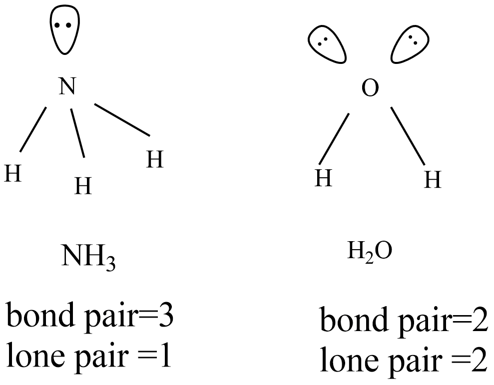 The given ammonia and water molecules are involved in $s{{p}^{3}}$ and expected structure to be tetrahedral. But there are one lone pair in ammonia and two lone pairs in water molecules that cause a distorted tetrahedral structure.