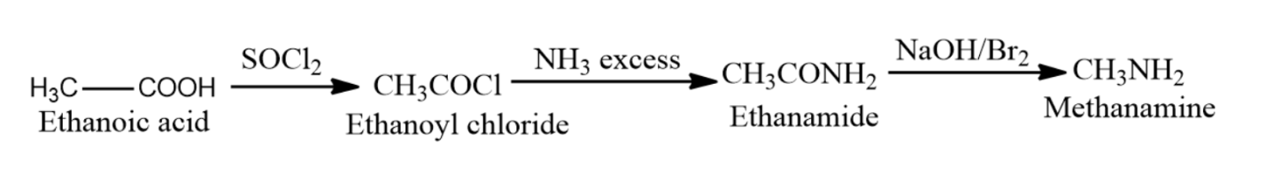 $C{{H}_{3}}CON{{H}_{2}}\xrightarrow{NaOH/Br}C{{H}_{3}}N{{H}_{2}}$