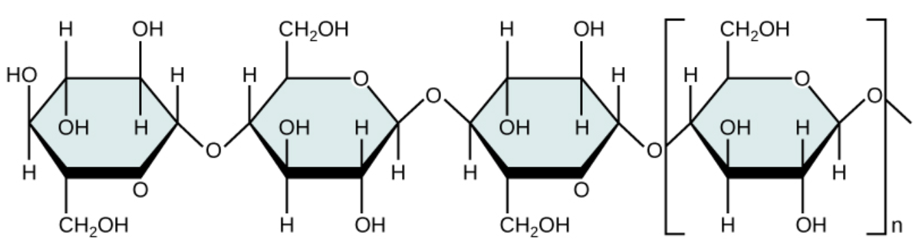 The primary structure of cellulose is simple unbranched polymer which comprises a long chain of glucose monomers which is attached together by β 1-4 glycosidic bonds. This bond helps in forming microfibrils which provide strength to the plants. Cellulose is broken down chemically into its monomer glucose by treating it with concentrated acids at high temperature.