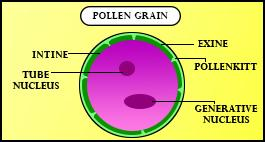 To ensure pollination through insects, a covering of yellow sticky substance is present around the pollen grain which is formed from the tapetum, which is the innermost nutritional layer of the anther.