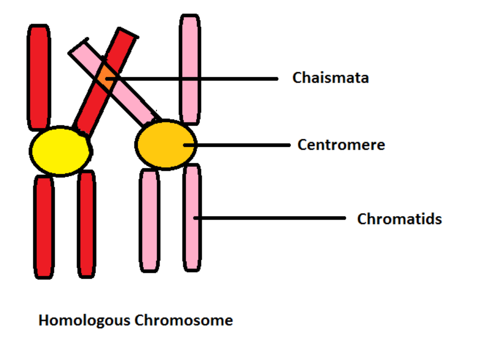 Diplotene – In this stage the crossing over (intermixing of the parental genes) is completed. Chiasmata is formed at the location where crossing over has taken place.