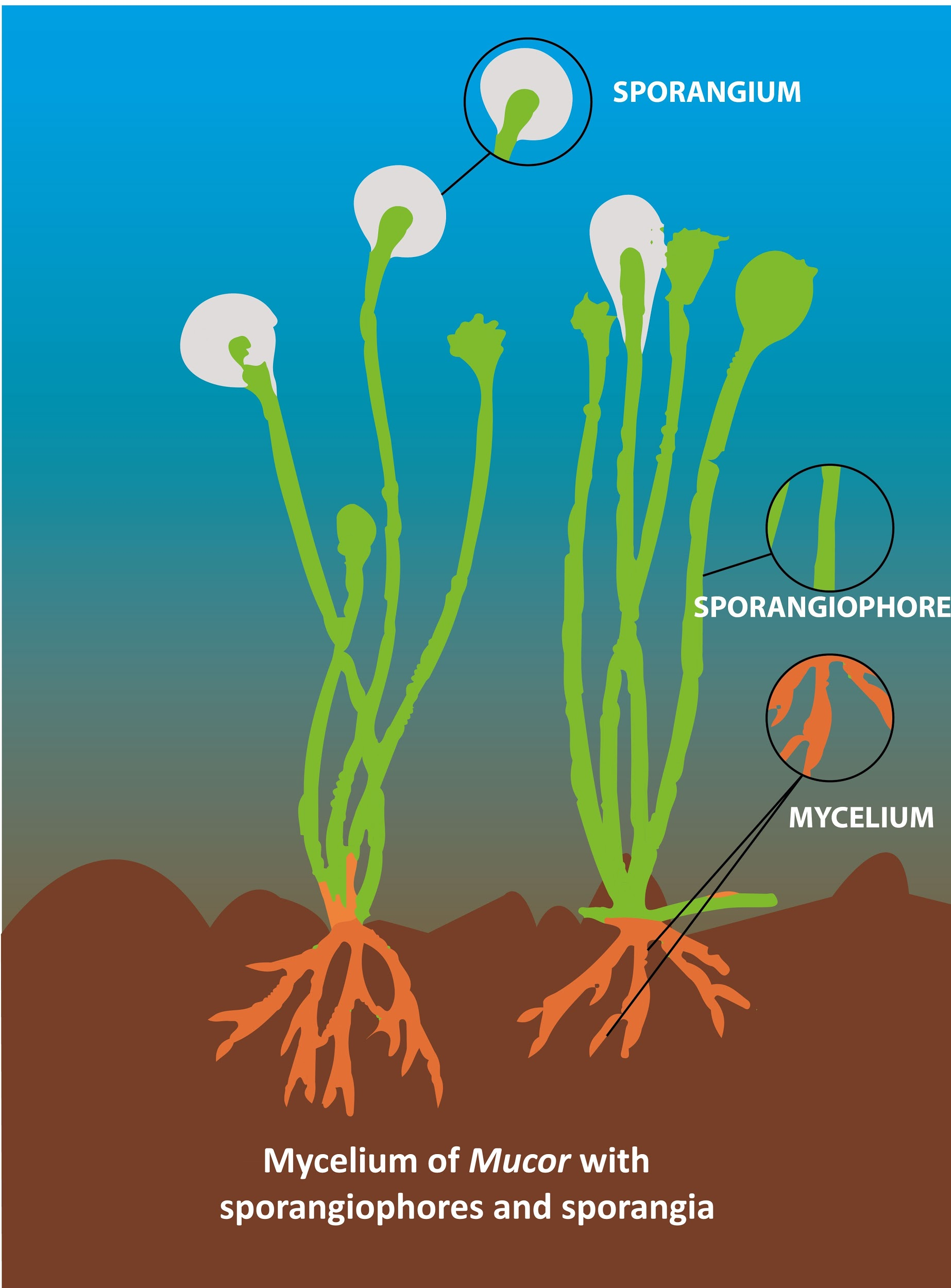 Hint: These are fungi that belong to the phylum Zygomycota, found in soil and decaying fruits and vegetables. Mucormycosis is a common fungal infection caused by them.