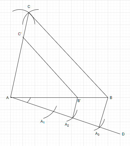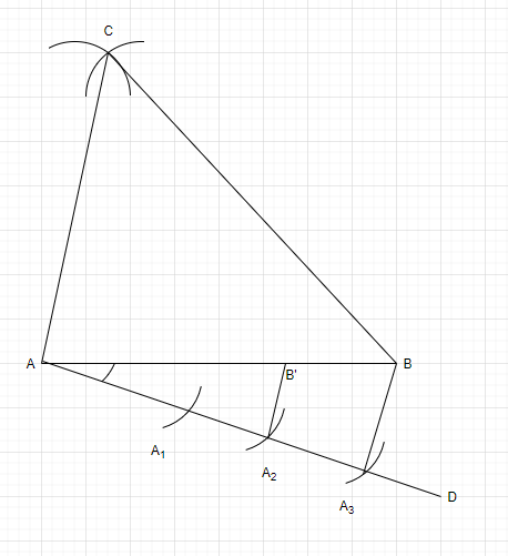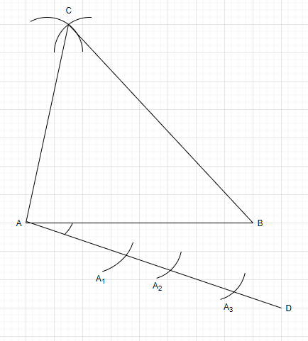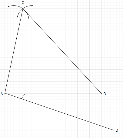 5. Draw a line $AD$ which makes an acute angle with $AB$ and is opposite of vertex $C.$