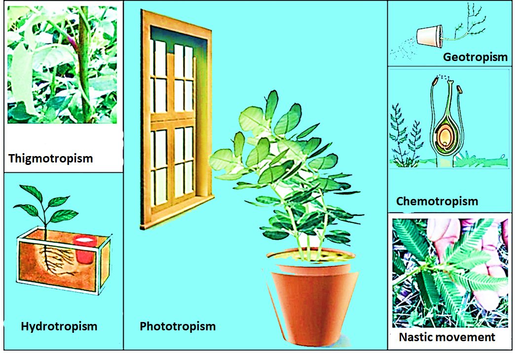 Chemotropism – the movement of plants in response to certain chemicals. Few chemicals are responsible for the movement and growth of plant organs.