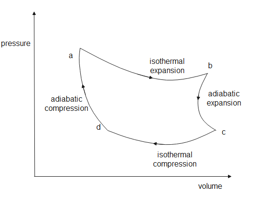 Hint: A Carnot cycle is a reversible, thermodynamic system which gives the greatest efficiency for all heat engines. It has four main processes and the system undergoes successive expansions and compressions. During expansion gas does work on the surroundings and in compression, work is done on the gas by the surroundings.