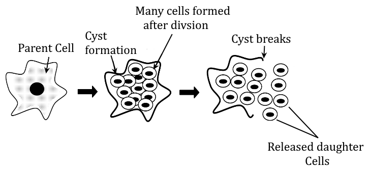 | Binary fission | Multiple fission |