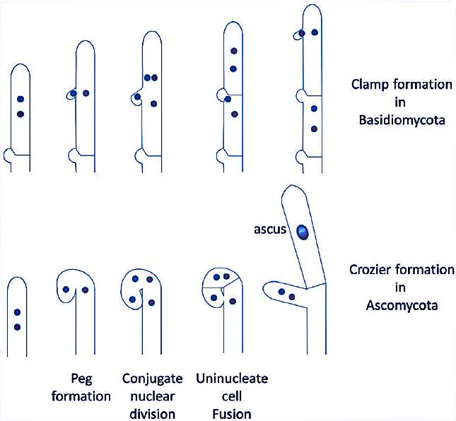 -In ascomycetes crozier (structure formed at the base of asci) is required to form dikaryons.