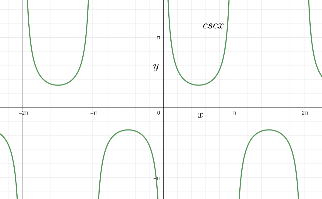 From the above graph also, we can say that the function $\csc x$ is invalid at $k\pi $ where $k=\pm 1,\pm 2,\pm 3,....$. Hence the domain of the function $\csc x$ is $x\ne kZ$.