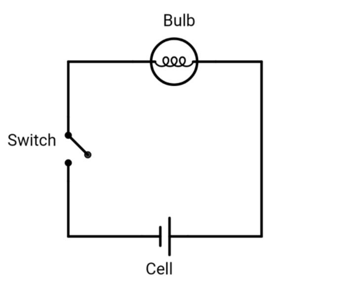 Draw a circuit diagram showing the cell, switch and a bulb.