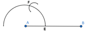 3.Taking E as centre and with the same radius as above draw an arc which intersects the previous arc at F.