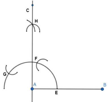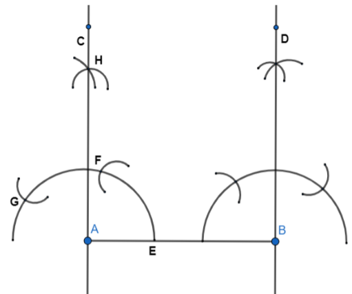 Note: We can draw the perpendicular lines at \[{{90}^{\circ }}\] as AB is a straight line. But for more accuracy we use this arcs method to solve the problem. Be careful while drawing arcs otherwise the whole diagram will change. In this type of problem diagram is most important to solve.