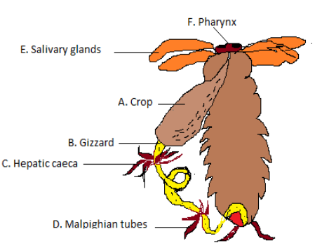 Digestion is defined as the process in which breakdown of food takes place into smaller components. Parts of the alimentary canal of cockroach have been divided into 3 sections:- fore-gut, mid-gut, hind-gut.