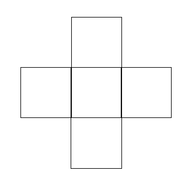 A plus (+) shaped figure will be obtained as shown above in the diagram. All four squares have their one side common to the first square.