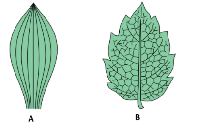 Thus, A- Monocot leaves(Parallel venation) B- Dicot leaves(Reticulate venation)