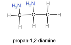 Propan-1,2-diamine, this compound contains a propane carbon chain, which is a 53carbon chain, and 2 amine groups are placed at first and second carbon. The formula will be ${{H}_{2}}NC{{H}_{2}}CH(N{{H}_{2}})C{{H}_{3}}$. Through this formula the structure can be drawn as,