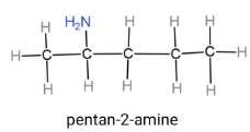 Pentan-2-amine, this compound contains a pentane carbon chain, which is a 5 carbon chain, and an amine group is placed at second carbon. The formula will be $C{{H}_{3}}CH(N{{H}_{2}})C{{H}_{2}}C{{H}_{2}}C{{H}_{3}}$. Through this formula the structure can be drawn as,