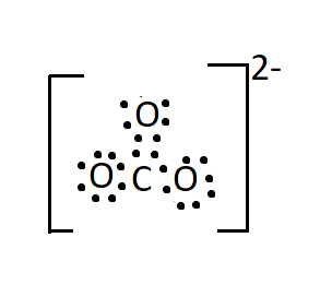 Draw the Lewis structure for carbonate ion, ${\text{CO}}_{\text{3}}^{{\text{2 - }}}$.