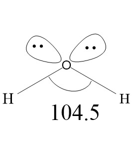 Draw the shape of a water molecule.