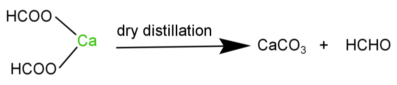 -Calcium formate: It is calcium salt of formic acid. It’s molecular formula is: $Ca{(HCOO)_2}$. It undergoes dry distillation to form formaldehyde ($HCHO$).