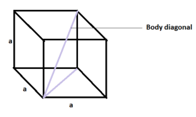 Therefore, we can write that the diagonal of the cube will be $\sqrt{3{{a}^{2}}}$ that is $\sqrt{3}a$ where ‘a’ is the edge length.