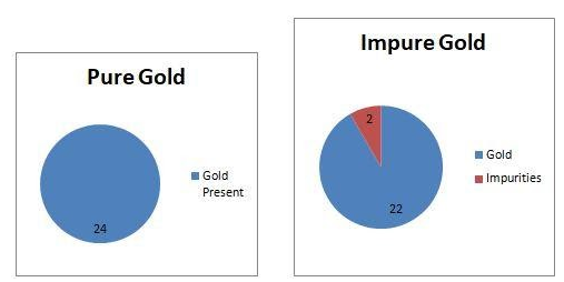So, \[22\] carat gold means that it has \[22\] part pure gold and \[2\] part impurities in the formed metal.