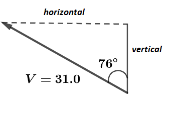 According to the question, we have given the magnitude of a vector V as $V = 31.0$ and the angle made by it with a line is $\theta = {76^o}$ now, let us draw the complete diagram to make a right angle triangle and horizontal and vertical component of the vector V are shown in the diagram as