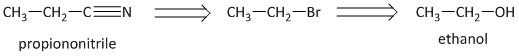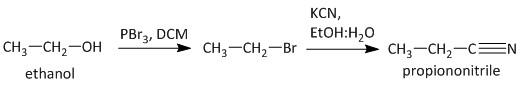 -The bromides are easily prepared from the corresponding alcohol using phosphorus tribromide. Thus the conversion from ethanol to propanenitrile is carried out in the following manner.