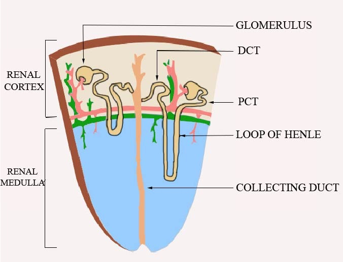 Nephrons in the kidney produce urine and also concentrate or dilute it according to the diet or environment. The countercurrent mechanism helps to concentrate the filtrate which occurs in the loop of Henle and vasa recta in the medulla region of the kidney. The flow of fluids in opposite directions is maintained by their flow in the two loops- ascending and descending limbs of the loop of Henle and vasa recta. The medullary concentration gradient caused by urea and sodium also plays a pivotal role in the countercurrent mechanism.