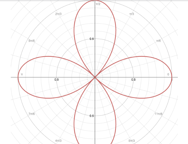 Now consider the given equation \[r = \cos 2\theta \] . Here a=1, the radius of circle is 1 and n=2, the number is even so we have 2n petals i.e., 4 petals for the rose.