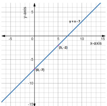 We have to plot $y = x - 7$ on the graph. The given equation is an equation of a straight line. For plotting a straight line we need at least two points. This we can get by assuming any values of $x$ and getting corresponding values of $y$.