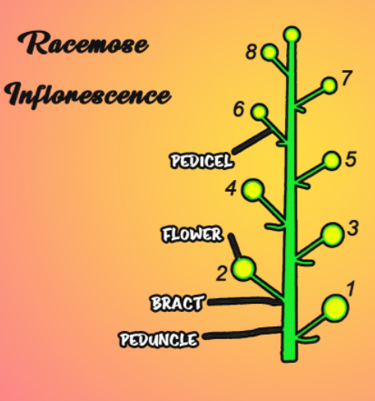 Raceme- in these flowers are arranged in an acropetal manner with the pedicel