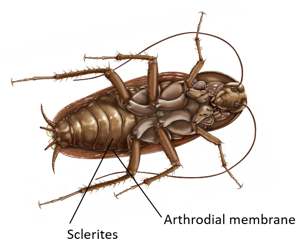 Hint: A thin flexible membrane known as the Articular Membrane is fused in cockroach sclerites. The articular membrane is an arthropod specialty. It is a flexible membrane that is, in essence, non-sclerotic and present between the sclerites of the arthropod segmented body.