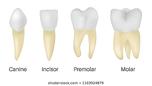 Heterodont dentition involves four types of teeth – incisors, canines, premolars and molars.