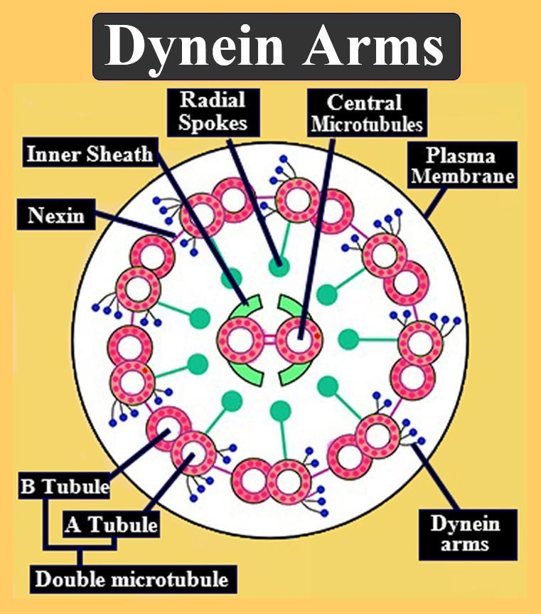All eukaryotic cilia and flagella are similar in their organization possessing a central bundle of microtubules known as the axoneme. The central pair of singlet microtubules is surrounded by the nine outer doublet microtubules. When the axoneme is viewed from the cross- section under the electron microscope a characteristic nine plus two arrangement of microtubules is seen. Each of the doublet microtubules consists of subfibers or ‘A and B’ tubules. The A with 13 protofilaments is the total number of microtubules and the B tubule has 10 protofilaments. The plasma membrane surrounds the axoneme which comprises the bundle of microtubules. The axoneme of the organism or cell type is always 0.25 micrometers in diameter but the length may vary from a few micrometers to 3 mm.