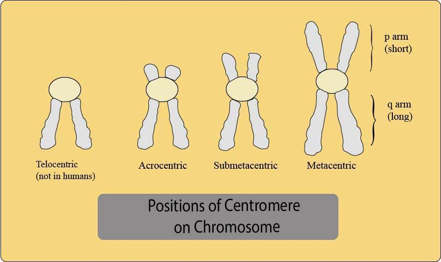 We know that chromosomes are located inside the nucleus of animal and plant cells and they are thread-like in structure and they are made of protein and a single molecule of deoxyribonucleic acid (DNA). The specialized DNA sequence of a chromosome that joins a pair of sister chromatids (a dyad) is the centromere. During the mitosis division, the spindle fibers attach to the centromere via the kinetochore. At first, centromeres were thought to be genetic loci that direct the behavior of chromosomes. According to the location of the centromere, the chromosomes are classified as metacentric, submetacentric, acrocentric, and telocentric.