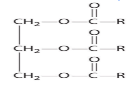 The organic molecules that store the most energy are called fats or triglycerides. The animal body uses carbohydrates (glycogen) for medium-term energy storage and fats or triglycerides (lipids) for long-term energy storage. Carbohydrates store about \[16\] kJ/g, while fats store about \[39\] kJ/g. Triglycerides are esters formed from glycerol and three fatty acids. The three fatty acids are usually different, but most common triglycerides contain \[16\], \[18\], or \[20\] carbon atoms.
