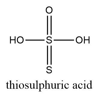Now, we need to find oxidation number of sulphur in thiosulphuric acid i.e., ${{H}_{2}}{{S}_{2}}{{O}_{3}}$ which is structurally represented as follows: