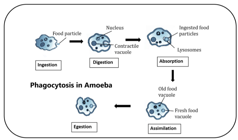 - Phagocytic enzymes are secreted into the vacuole during which digestion takes place.