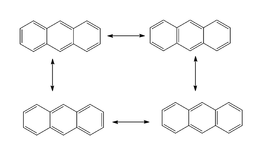 Anthracene will undergo delocalisation to give four resonance structures. The resonance structure of Anthracene is given below: