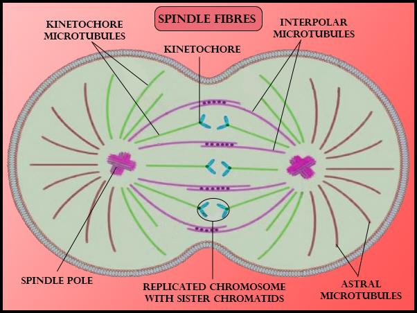Spindle fibers- it forms a protein structure and divides the genetic material in a cell.during board types of cell division that is mitosis and meiosis, spindle fibers divide the chromosomes in a parental cell into two daughter cells. Spindle fibers are called mitotic spindle during mitosis and meiotic spindle during meiosis.