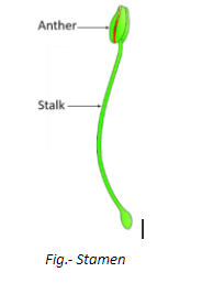 Additional Information: Stamen is the male reproductive part of a flowering plant that comprises an anther connected to a filament and produces pollens. Microsporangia, which develops into the pollen grains, are located within the anther. All the stamens present in a flower collectively form androecium and their number varies from species to species. Besides the number, stamens also vary in appearance and position in different plant species, and in some plants, they are fused at either the anther or the filament.