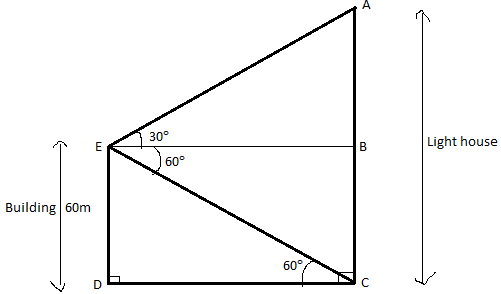 Angle of depression from the building to the bottom of lighthouse = 60°