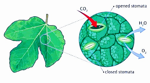 - Through stomata, air enters the plants by gaseous exchange, which contains carbon dioxide and oxygen.